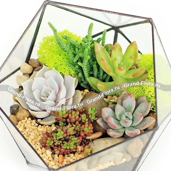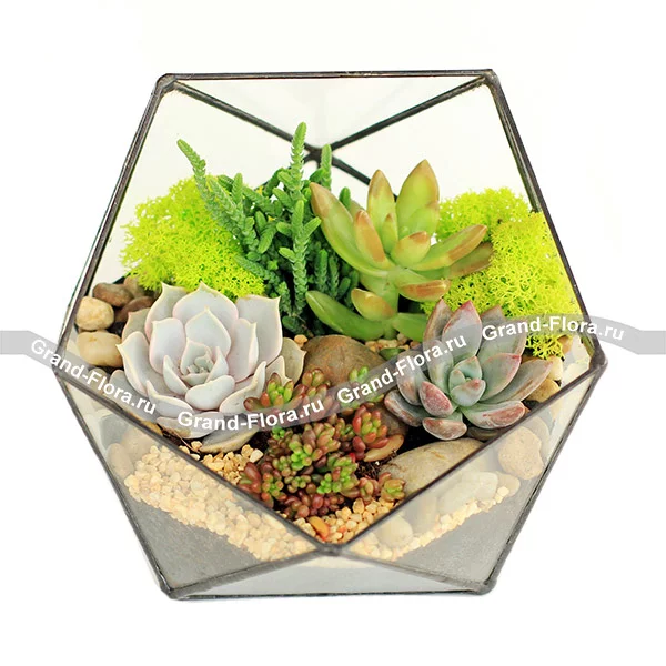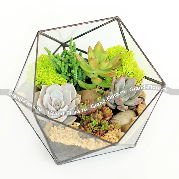 Икосаэдр мини - флорариум с живыми растениями